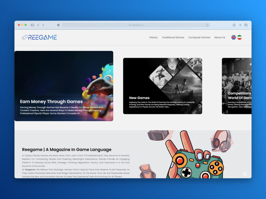 أطلقت Reegame منصة ألعاب ثلاثية اللغات تبث الألعاب الكلاسيكية، وتنشر مراجعات معمقة لأحدث العناوين، وتدير مجلة ألعاب رقمية بالإنجليزية والعربية والفارسية — مصممة خصيصًا لتمكين وتلبية احتياجات مجتمعات الألعاب المتنوعة بسلاسة.